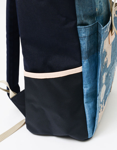 The main body fabric is nylon twill with 320D length and width and is treated with Komatsu Matere Co., Ltd.'s Kombu®-N, which makes it supple yet hard enough to stand on its own, making it look like kelp, a marine product. The special fabric is characterized by its dryness and tightness, and the original lintel/denim patchwork pattern by “FDMTL” (Fundamental) is available in a rich variety of 16.7 million colors called Mona Lisa ® by Komatsu Matere Co., Ltd. We use original fabrics that are clearly digitally printed using advanced technology to control this. Mona Lisa ® is an environmentally friendly material that does not use unnecessary dyes or chemicals and significantly reduces the amount of water, resources, and energy required for processing compared to conventional materials. The attached fabric is a combination of INVISTA's 1000D CORDURA® nylon and 1680D CORDURA BALLISTEC® nylon, which has approximately five times the wear and tear strength and durability of regular nylon. In addition, the attached leather is made of 1.8 m/m thick eco-numerous cow leather tanned with 100% vegetable tannin, without using any chemicals or dyes that cause environmental pollution, or any other substances harmful to the human body, or hexavalent chromium. (NISSENKEN Oeko-Tex Standard 100 certified).