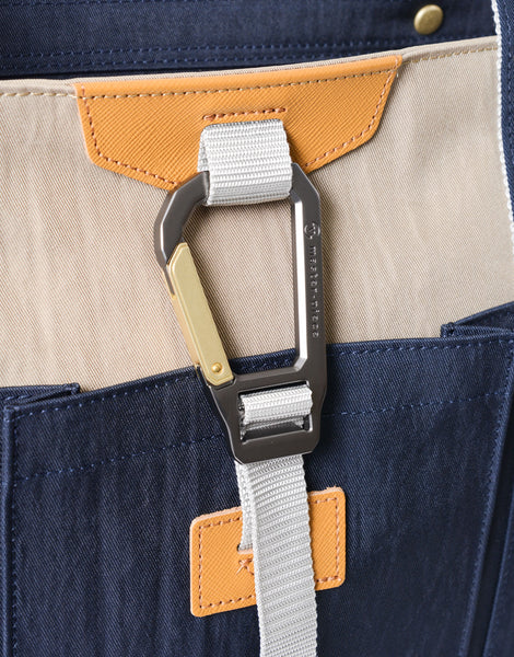 The original black and gold carabiner also adds a nice accent to the chic look and adds a unique touch. The main storage can store A4 documents and has side pockets, making it a unisex design.