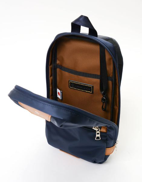 A Sling Bag of the Progress (progress) series of master-piece, which has an impressive cow leather used in the glossy nylon twill and a cow leather used for combination. PVC coating is applied to the back of the fabric to achieve waterproofness and firmness. It is a coating color with a sporty impression, a neo -worker that carries limited luggage and necessities, and of course town use. The compatibility with the bicycle style is outstanding.