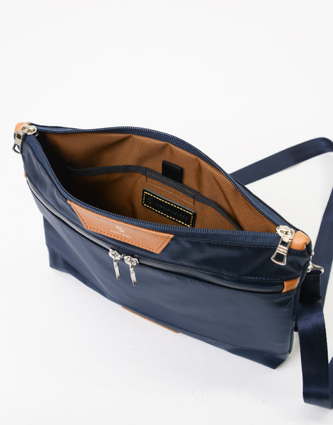 Sacoche of the Progress (progress) series of master-piece (masterpiece), which has an impressive cow leather used in the glossy nylon twill and a cow leather used for combination. PVC coating is applied to the back of the fabric to achieve waterproofness and firmness. It is good for use, and the divided pockets in the main storage are beautifully stored in thin accessories in the main storage. The back pocket is convenient for storing items that are easy to put in and out quickly, such as smartphones.