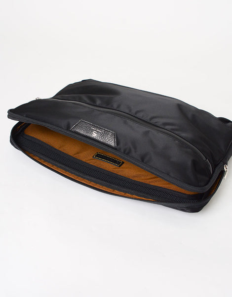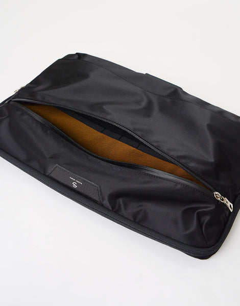 A PC case of the master-piece (masterpiece) Series (masterpiece) series, which has an elegant expression and a cow leather used for combination with glossy nylon twill. PVC coating is applied to the back of the fabric to achieve waterproofness and firmness. The luxurious and sporty style that was unlikely to be so far protects the PC from the rain that has invaded the bag. It is a reliable PC sleeve that is excellent in functional beauty that supports the 16inch size of the MacBook Pro.