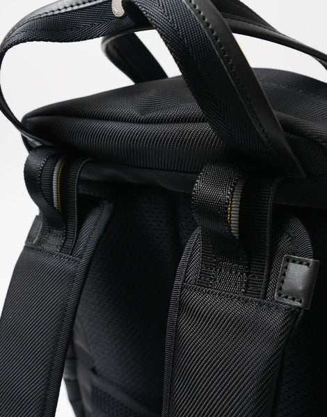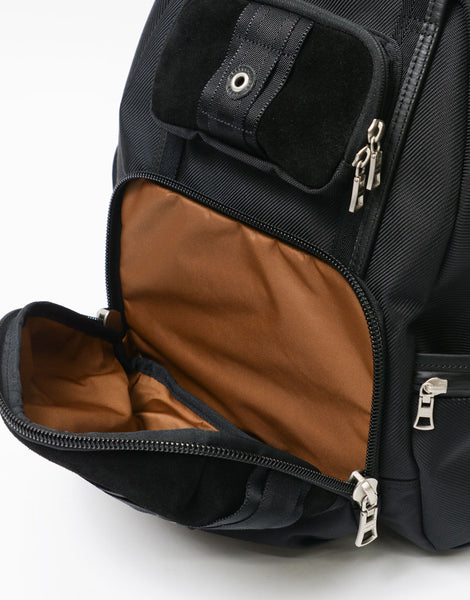 The body material is a twill fabric of the tune using a 1260D thread that has been twisted with Torayo "Farro®" as a vertical. Farillo® is a hollow nylon material with a unique luster and texture due to the special hollow structure. It is a material that is thicker than 20% lighter than the same 1260D, but has a moderate firm firmness. The finish is applied for water -repellent. The bottom is a three -layer fabric using Hollofil AirTM (66 nylon hollow thread) of Cordura® Brand Fabric, which is a highly durable and high -water -resistant original fabric. The attached suede is tanned with chromium, which is thick in North America, and then buffed carefully with sandpaper to make brushed finely. Because the thickness is a solid leather, the dyeing process is divided into two times, and the waterproofing is enhanced by adding a waterproof agent during dyeing. The leather arranged on the handle, etc., is tanned with 100% tannins, making it a solid leather that can enjoy aging. This series is a brand logo with an eyelet and an eyelet with a military -like daisy chain that combines high strength and high water -repellent material.