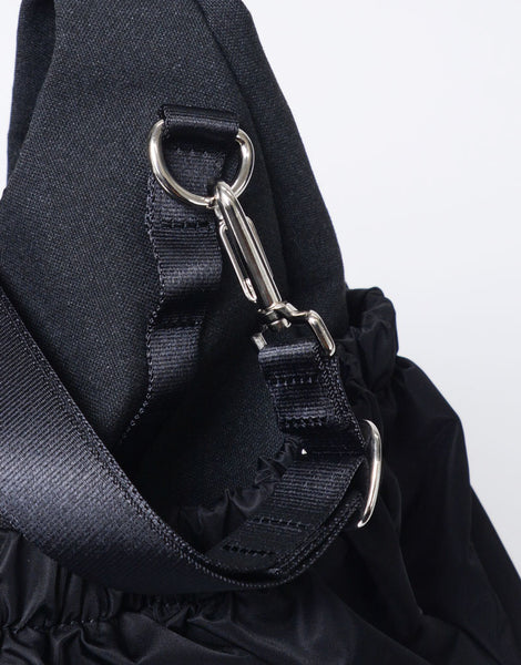 The attached material is a high -density nylon twill using a nylon yarn that reproduces the nylon waste material generated when producing a thread at the spinning factory, 70D for vertical yarn and 200D for horizontal thread. This nylon thread is not only a material that is gentle on the GRS certified environment, but also has a lightweight and durable place.