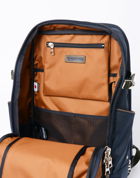 Furthermore, the backpack is equipped with an original mechanism called "m-strap 2" that reduces the load applied to the body. Not only is it cushioned, but it also fits the shoulders of a variety of people, making it comfortable to use.