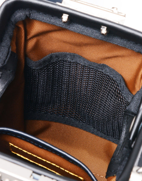 The attached fabric uses 110d semi-dull thread for the warp thread and 210d bright thread for the weft thread, giving it two types of luster, resulting in a distinctive deep color. The lock can be locked with the included key.