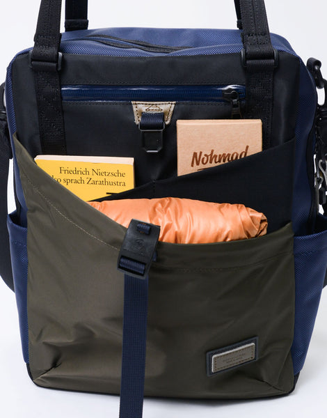 This item features highly robust nylon, nylon twill with just the right amount of gloss, a leather name with retroreflective features, and a front pocket made from different materials.