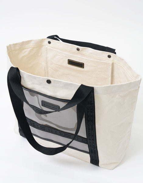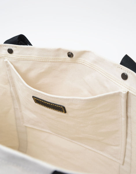 The main material is yarn-dyed Selvedi No. 8 canvas woven at an ultra-high density on an old shuttle loom, and by 33 of the 25 weft threads are normally driven into the weft, the material is unique to the shuttle loom.