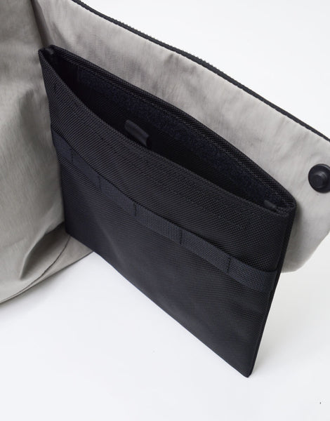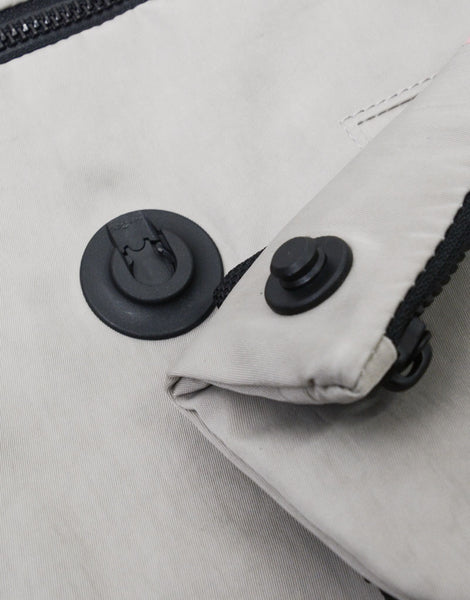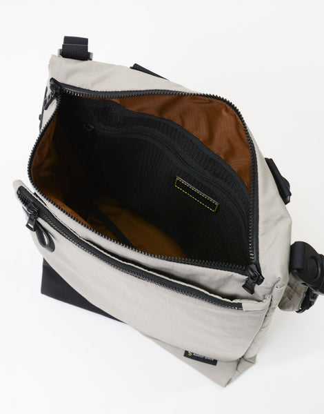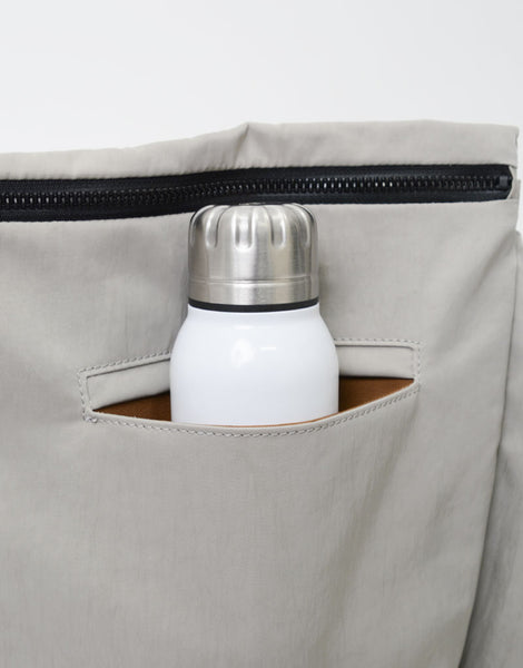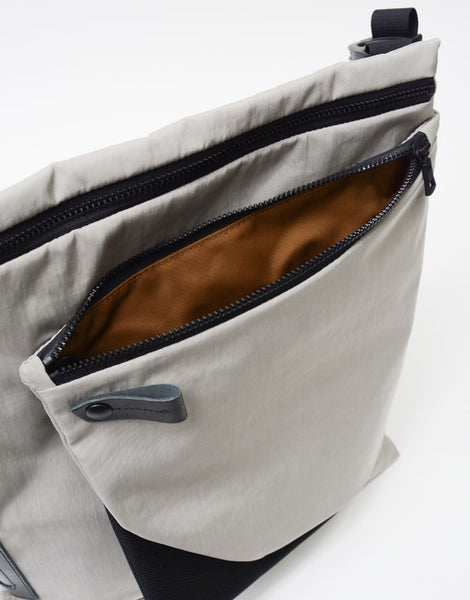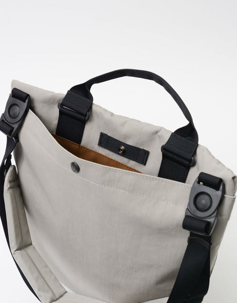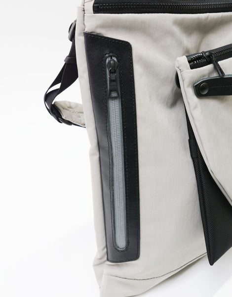 The main body material is a lightweight yet tightly made domestic nylon twill made from 110d warp thread and 210d weft. Liquid flow dyeing (also known as jet dyeing, a method of dyeing the fabric onto the flow of dye that is sprayed from the nozzle) creates a natural wrinkled feel and a calm gloss. After dyeing, the surface of the fabric is treated with a weak water-repellent finish.