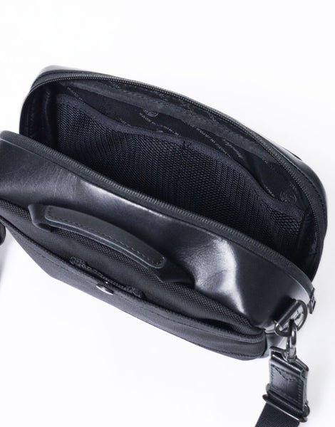 本体のレザーは若干の色ブレがございます。また素材の特性上、変退色はさける事ができませんのでご了承ください。またSCOTCHGARD® の防水加工をしていますが、縫製部分やパーツの境目からの浸水は免れません。ナイロン素材は濡れたまま長時間放置いたしますと、裏面のPVC が剥離したり、劣化の原因になりますので必ず乾かしてから保管して下さい。