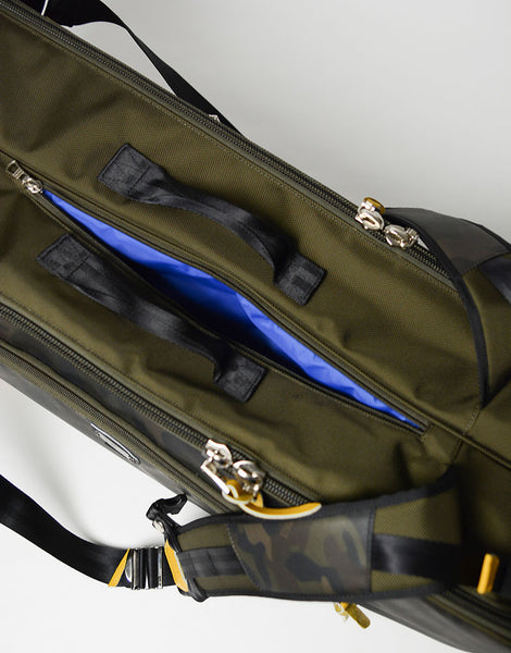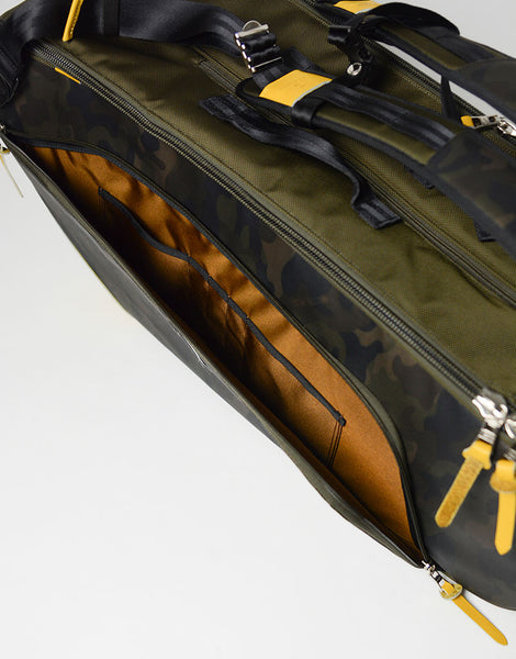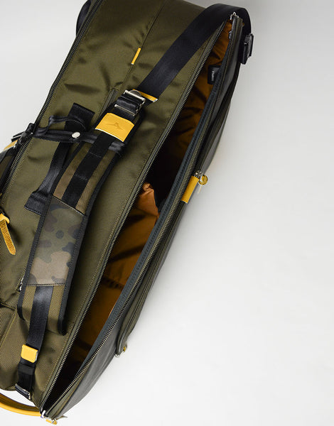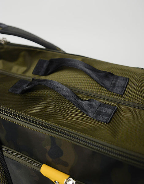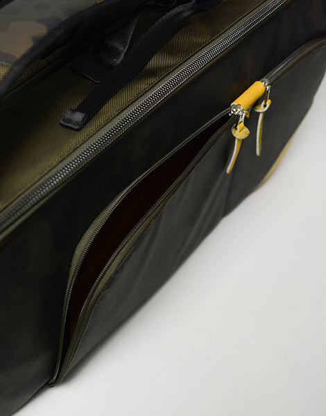 本体生地に300dのポリエステルにmaster-pieceオリジナル・カモフラージュをプリントし、表面には環境に配慮した0.4mm厚の色付きノンフタル酸のPVCをコーティングしています。