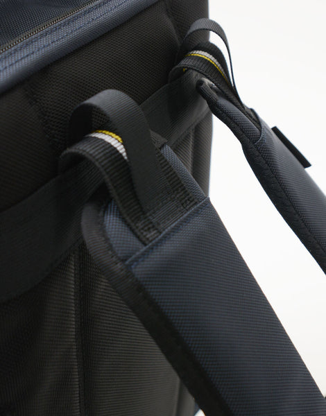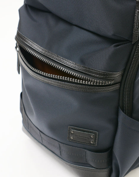 高い次元の耐久性、耐水性、撥水性を兼ね備えたオリジナル3レイヤーファブリック「MASTERTEX」を使用したmaster-pieceのrise(ライズ)ver.2シリーズ。付属レザーにも防水効果に優れた「SCOTCHGARD」モニタリング試験に合格したレザーを使用しています。No.02261-v2は機能面、収納力、汎用性に優れたバックパックです。シンプルながらインパクトのあるデザインで、ネオビジネスやタウンユースでも活躍します。