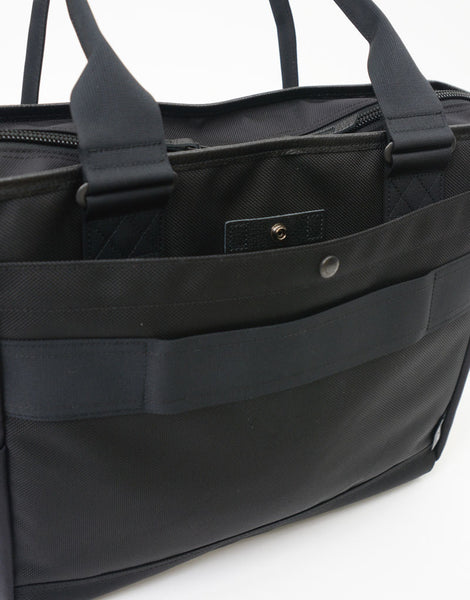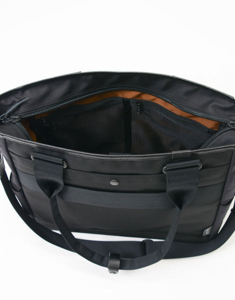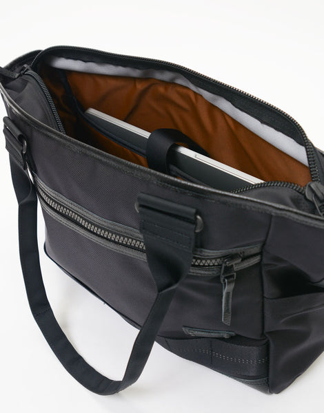 高い次元の耐久性、耐水性、撥水性を兼ね備えたオリジナル3レイヤーファブリック「MASTERTEX」を使用したmaster-pieceのrise(ライズ)ver.2シリーズ。付属レザーにも防水効果に優れた「SCOTCHGARD」モニタリング試験に合格したレザーを使用しています。コンパートメント内にPCポケットや多目的なジップポケットを搭載。重厚な面構えでビジカジシーンにフィットするトートバッグです。