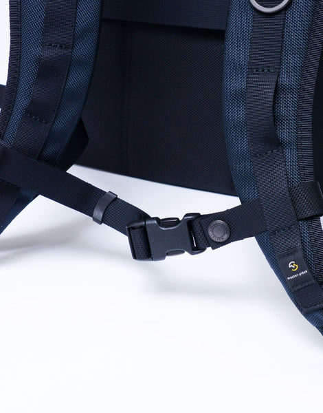 底面等の素材は通常ナイロンの約5 倍の摩耗・引き裂き強度・耐久性を持つINVISTA 社の 1680d コーデュラバリステック® ナイロンを使用し、裏面にPVC 加工を施すことで更なる強度と防水性を向上させています。また機能面では、ショルダーハーネスのクッションの中にはNASA のために開発された温度調節素材アウトラスト®を使用し、メッシュ素材も従来使用していたものよりも目の細かい、より肌触りのいいものを採用。