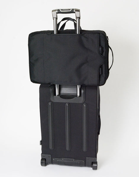 背面のファスナーを上下開けると、キャリーバー対応となっております。