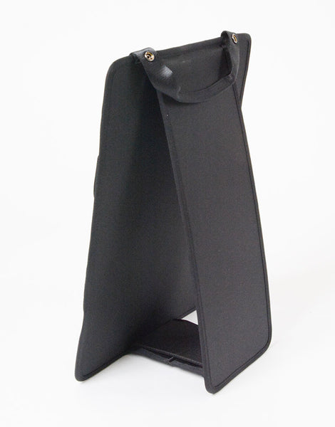ワークパッドは芯材と背面のス タンドで自立し、ラップトップ やタブレット等の収納が可能。