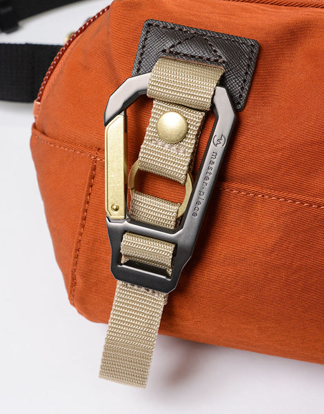 シリーズシンボルのブラック × ゴールドのカラビナがスタイリングを引き締めます。