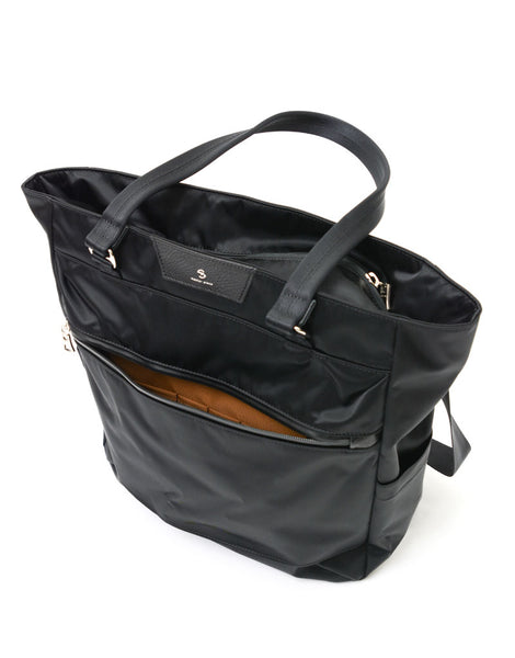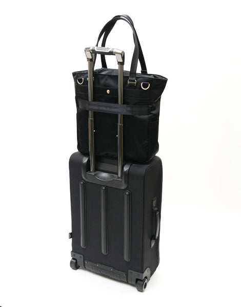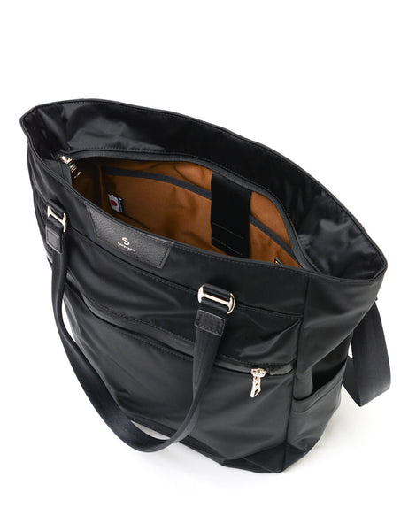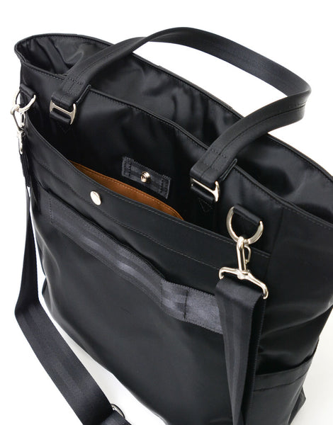 光沢感のあるナイロンツイルによる上品な表情とコンビネーションに使用されたカウレザーが印象的なmaster-piece( マスターピース)のProgress(プログレス)シリーズの2WAYトートバッグ。生地の裏面にはPVCコーティングが施され、防水性とハリ感を実現しています。ビジネスカジュアルとして、オンオフ兼用で使用することが可能です。