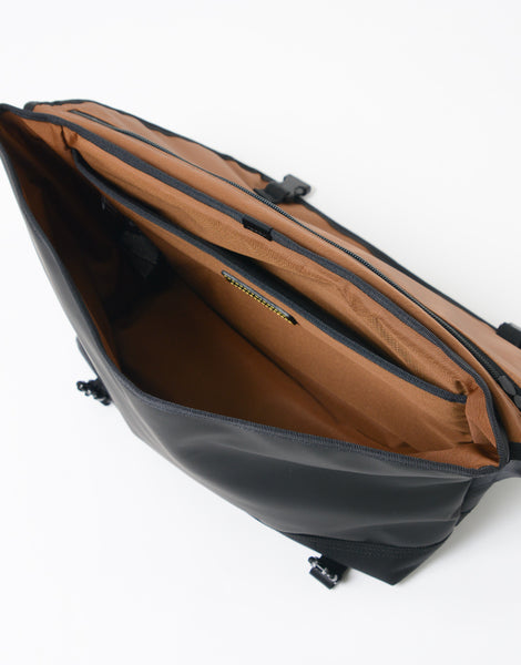 フラップを使わないメイン収納へのアクセスの良さや追求された機能性により、より良いビジネスライフ、タウンユースを実現する洗練されたメッセンジャーバッグです。