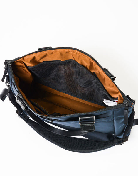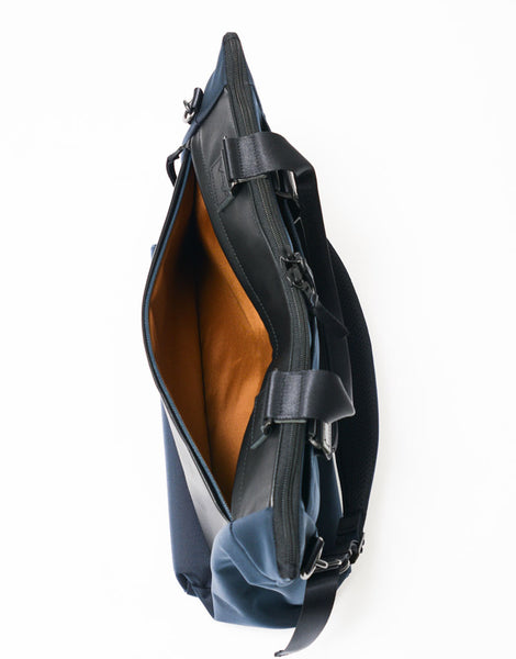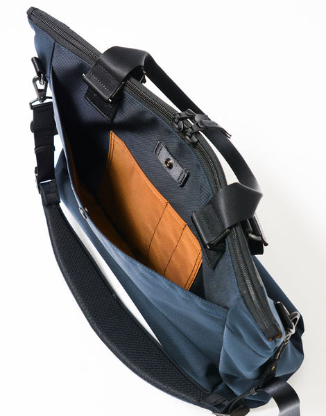 ミリタリーテイストな面構えとフロント部分に大きく使用されたレザーの組み合わせが印象的なシリーズSPEC(スペック)。こちらはmaster-piece ONLINE STORE、直営店限定のアイテムとなります。防水性、耐久性に優れた素材を使用しており、オールブラックのシンプルなデザイン性、PCやタブレットがすっぽりと収まるサイズ感の2WAYトートバッグは上品さとともに機能性も優れています。豊富に設けられた収納は、タウンユースはもちろん、ビジネスシーンやトラベルにも適用しており、様々なライフスタイルをフォローします。