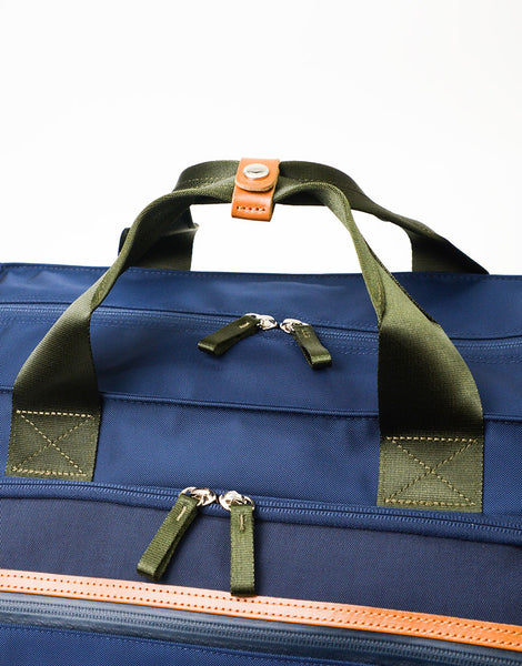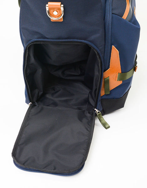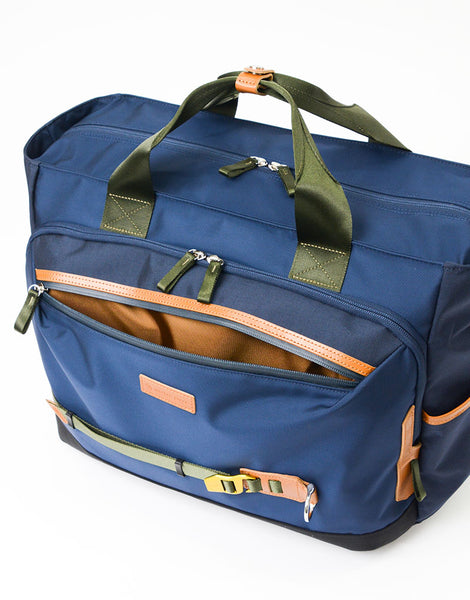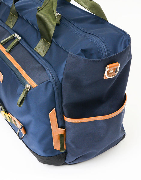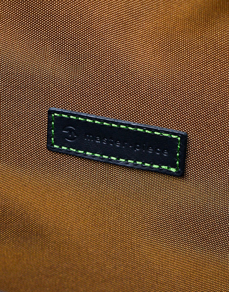 本体素材は CORDURA® brand fabric の生産、品質基準を満たした認定工場において、210d の 66 ナイロン糸を 2 本撚りしたものを、2 本引き揃え、タテ・ヨコに使用し織り上げた、耐久堅牢度に 優れたオリジナルファブリック、MASTERTEX-07 になります。生地の表面には撥水加工、裏面には特殊透湿防水フィルム L-Vent® をラミネート加工し、トリコットナイロンを貼り合わせた3 レイヤー 構造による耐水圧 20,000mm レベルの防水機能を備えております。またパーツにより、オリジナルファブリックである MASTERTEX-04、05、06 を組み合わせています。 付属素材もレザーは防水鞣しを施したレザーを使用、底面の素材は、通常ナイロン の約 5 倍の摩耗・引き裂き強度・耐久性を持つ INVISTA 社の 1680D コーデュラバリステック ® ナイ ロンを使用し、裏面に PVC 加工を 施すことで更なる強度と防水性を向上させています。master-piece のフラッグシップシリーズ potential を GOLF で使えるギアとしてアップデートしました。| Size | W420 H320 D200 mm |