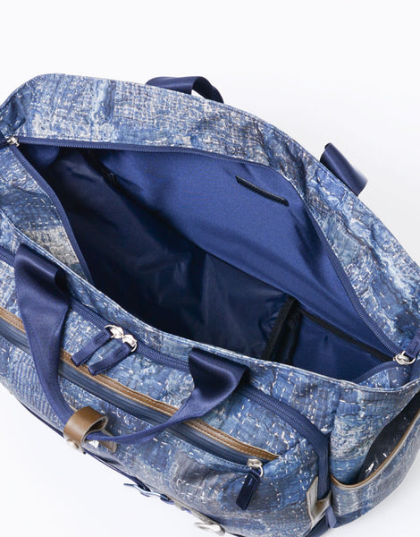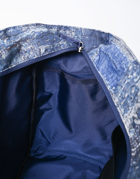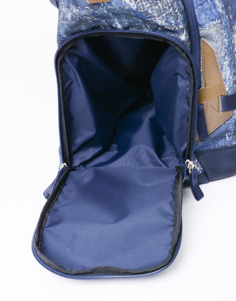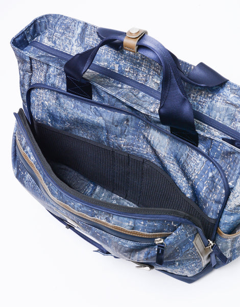 本体素材は600d のポリエステル糸を高密度に織ったオックスに、エイジングインディゴデニム柄、日本の伝統的な刺し子デザインやボロパッチワークといったFDMTL(ファンダメンタル)の美学を備えたテクニカル生地で構築したオリジナルの柄を、昇華転写プリントで表現しています。