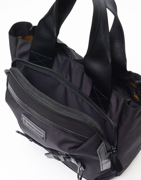本体素材は CORDURA® brand fabric の生産、品質基準を満たした認定工場において、210d の 66 ナイロン糸を 2 本撚りしたものを、2 本引き揃え、タテ・ヨコに使用し織り上げた、耐久堅牢度に 優れたオリジナルファブリック、MASTERTEX-07 になります。生地の表面には撥水加工、裏面には特殊透湿防水フィルム L-Vent® をラミネート加工し、トリコットナイロンを貼り合わせた3 レイヤー 構造による耐水圧 20,000mm レベルの防水機能を備えております。またパーツにより、オリジナルファブリックである MASTERTEX-04、05、06 を組み合わせています。 付属素材もレザーは防水鞣しを施したレザーを使用、底面の素材は、通常ナイロン の約 5 倍の摩耗・引き裂き強度・耐久性を持つ INVISTA 社の 1680D コーデュラバリステック ® ナイ ロンを使用し、裏面に PVC 加工を 施すことで更なる強度と防水性を向上させています。master-piece のフラッグシップシリーズ potential を GOLF で使えるギアとしてアップデートしました。