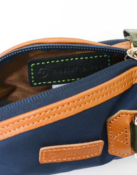 本体素材は CORDURA® brand fabric の生産、品質基準を満たした認定工場において、210d の 66 ナイロン糸を 2 本撚りしたものを、2 本引き揃え、タテ・ヨコに使用し織り上げた、耐久堅牢度に 優れたオリジナルファブリック、MASTERTEX-07 になります。生地の表面には撥水加工、裏面には特殊透湿防水フィルム L-Vent® をラミネート加工し、トリコットナイロンを貼り合わせた3 レイヤー 構造による耐水圧 20,000mm レベルの防水機能を備えております。またパーツにより、オリジナルファブリックである MASTERTEX-04、05、06 を組み合わせています。 付属素材もレザーは防水鞣しを施したレザーを使用、底面の素材は、通常ナイロン の約 5 倍の摩耗・引き裂き強度・耐久性を持つ INVISTA 社の 1680D コーデュラバリステック ® ナイ ロンを使用し、裏面に PVC 加工を 施すことで更なる強度と防水性を向上させています。master-piece のフラッグシップシリーズ potential を GOLF で使えるギアとしてアップデートしました。