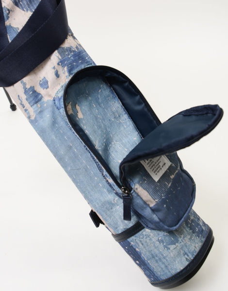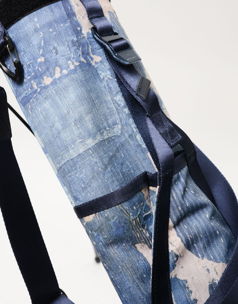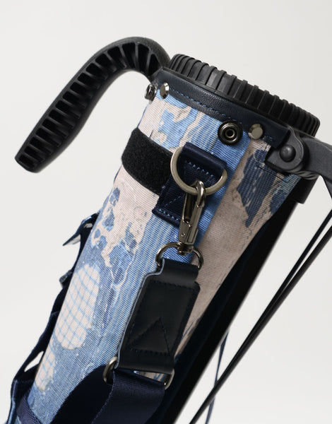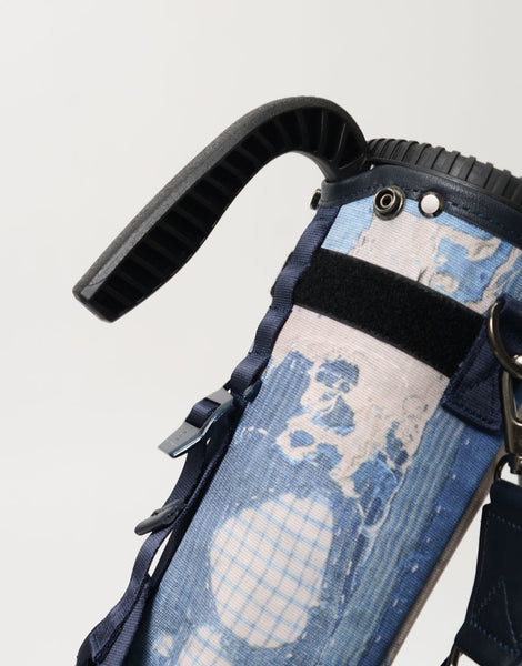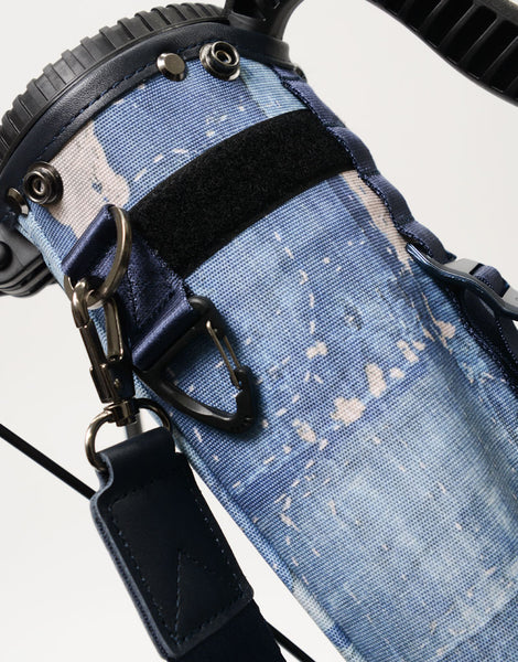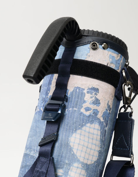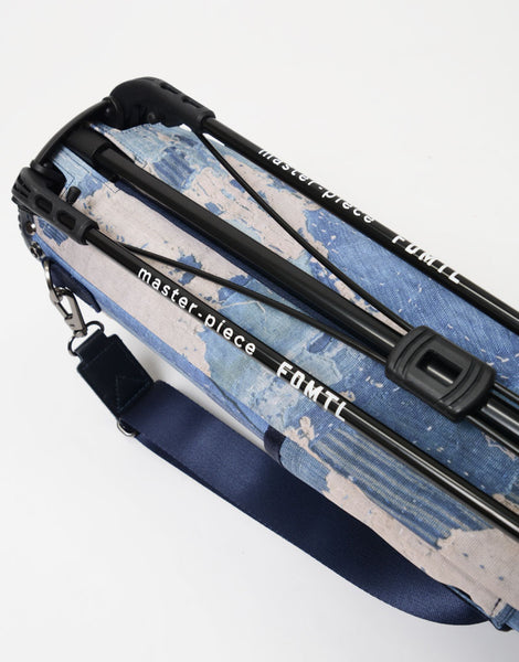 本体素材は600dのポリエステル糸を高密度に織ったオックスに、エイジングインディゴデニム柄、日本の伝統的な刺し子デザインやボロパッチワークといったFDMTL(ファンダメンタル)の美学を備えたテクニカル生地で構築したオリジナルの柄を、昇華転写プリントで表現しています。付属素材はデニムのインディゴをイメージしたダークネイビーに染め上げたカウレザーを使用しています。FDMTLのシグネチャーである美しいパッチワークとmaster-piece GOLFの機能が融合したゴルフギアに特化したコラボレーションシリーズです。