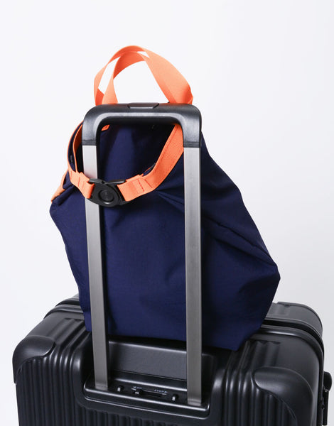 シリーズ最大の特徴である、底に設けたホックを留めることでマチを無くしたり、違うシルエットに変形することができます。またショルダーベルトを外し、本体のバックルを止めることで違うニュアンスで使用することもできます。