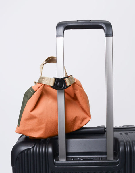 本体のバックルの脱着によって、他のバッグのハンドルなどにも取り付けが可能です。