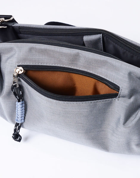 本体正面にファスナーポケットを装備。出し入れの多い小物の出し入れに便利です。