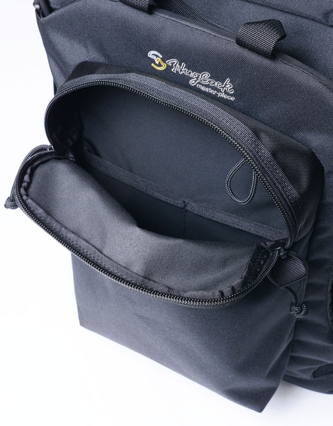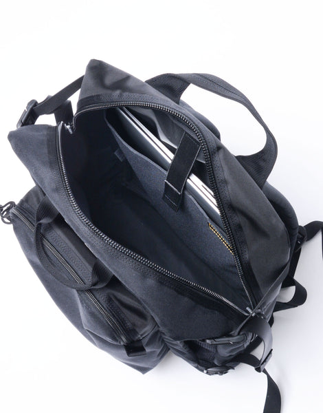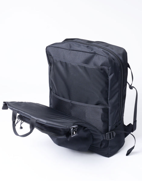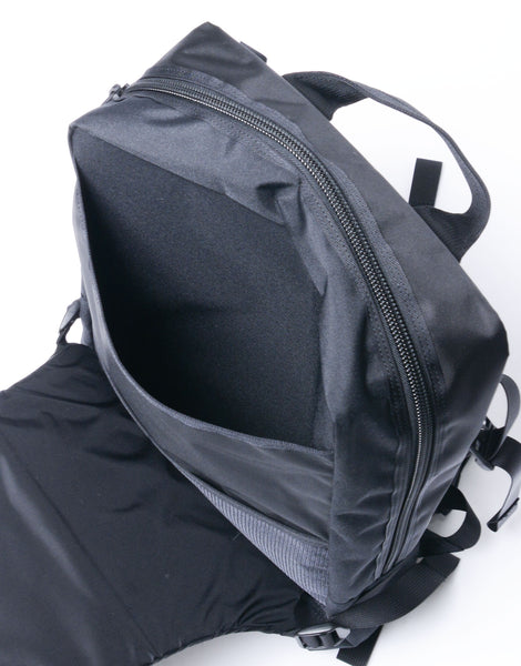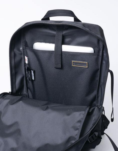 メイン収納部をしっかりした芯材でホールドする構造が最大の特徴で、荷物を外部の衝撃から守ってくれます。ラップトップやタブレット、カメラなど、その他の電子機器も安心して持ち運べます。これは古着のアウトドアのザックからインスピレーションを得たコンセプトで、それをタウンユースに落としこみました。