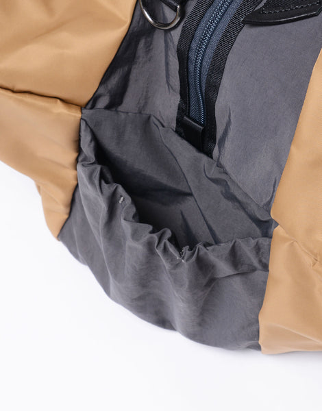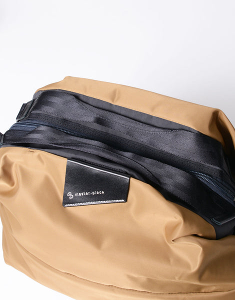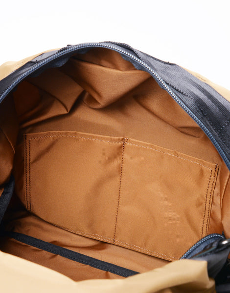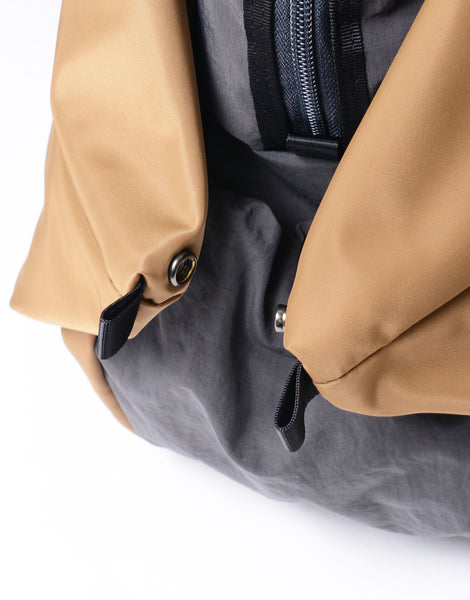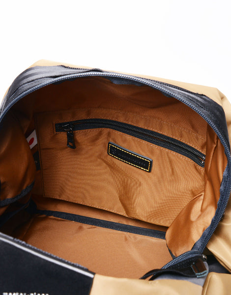 本体素材には工場で出た廃材を原料としているリサイクル素材、東レのエコユース® を使用し、タテ糸70dヨコ糸210dのセミダル糸で織り上げたリサイクルナイロンツイルを採用。