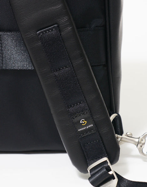 ショルダーストラップにはmaster-pieceのロゴとカラビナなどを装備できるテープが施されています。