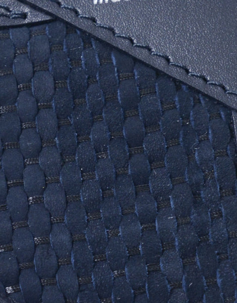 本体素材には、タテ糸に箔糸と絹糸、ヨコ糸にはオーストラリア産のカンガルーレザーを幅2mm にした革紐を使用し、コンビネーション鞣しを施すことで織物として使用できるよう強度を持たせております。京都発祥で1000 年以上の歴史があるといわれる伝統産業の「西陣織」の職人が手掛けたレザーメッシュで、着物を織る織機で伝統技術を受け継ぐ職人が一本一本丁寧に織り上げています。
