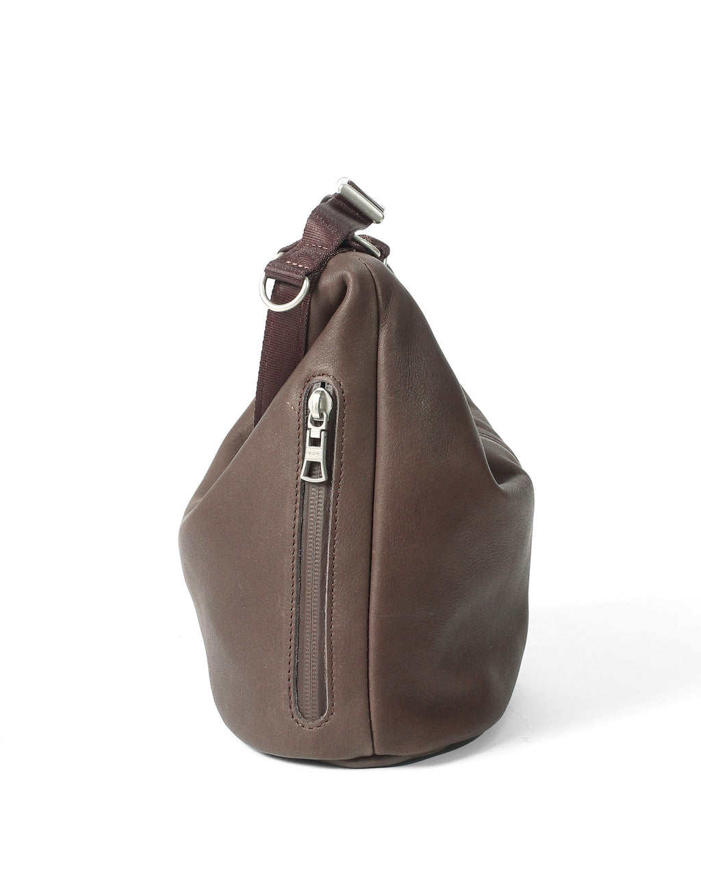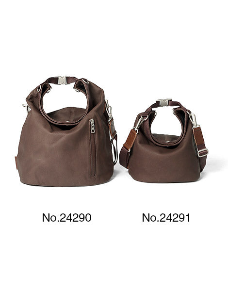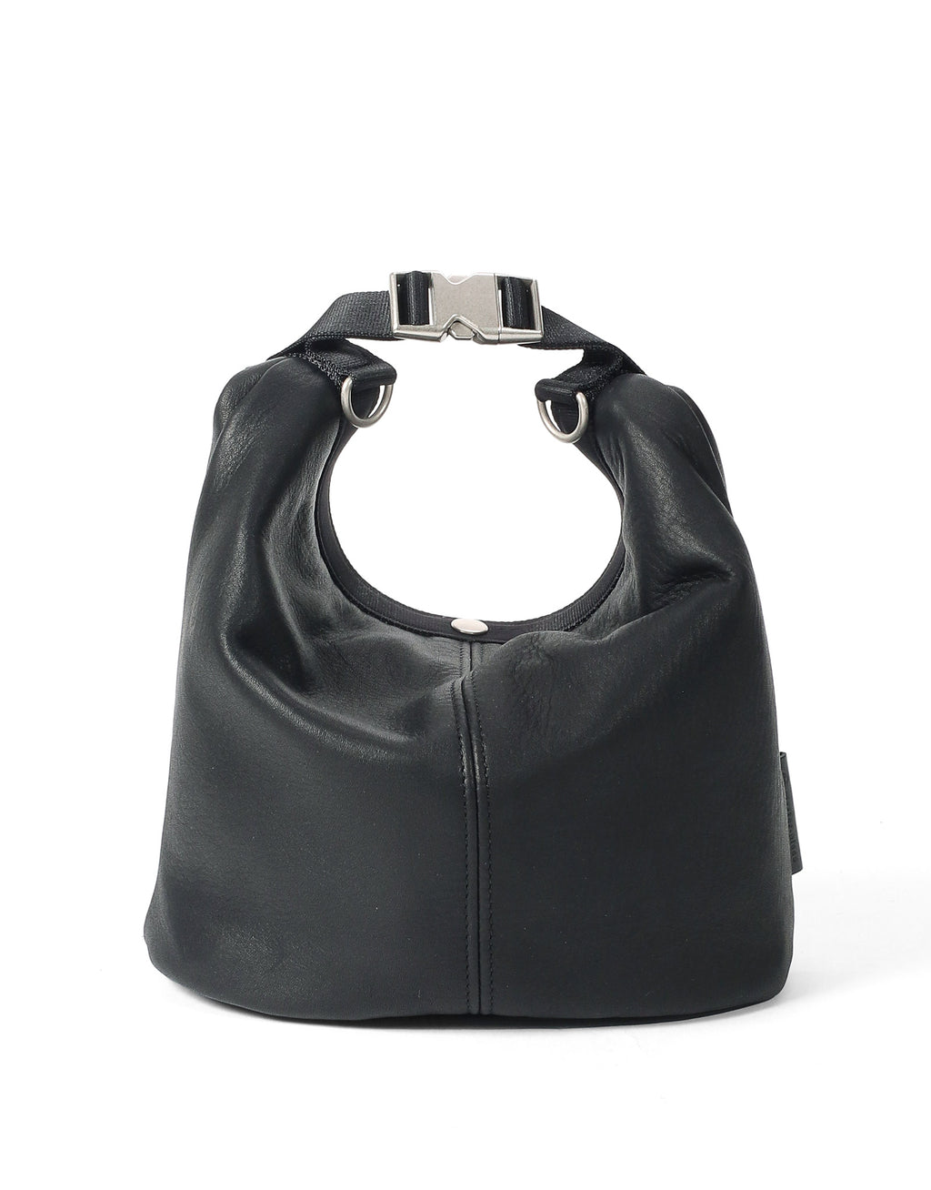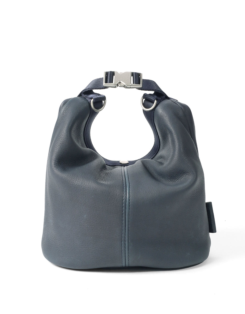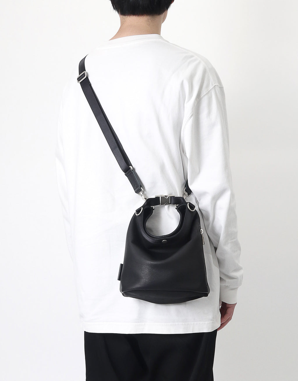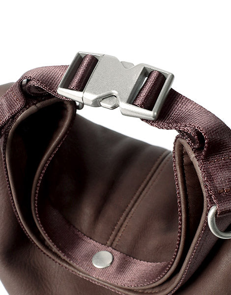 防水の機能性を持たせながらもソフトに仕上げられたレザーと、光沢感のあるナイロンテープを組み合わせたユニセックス・デザインのレザーバッグシリーズ。
