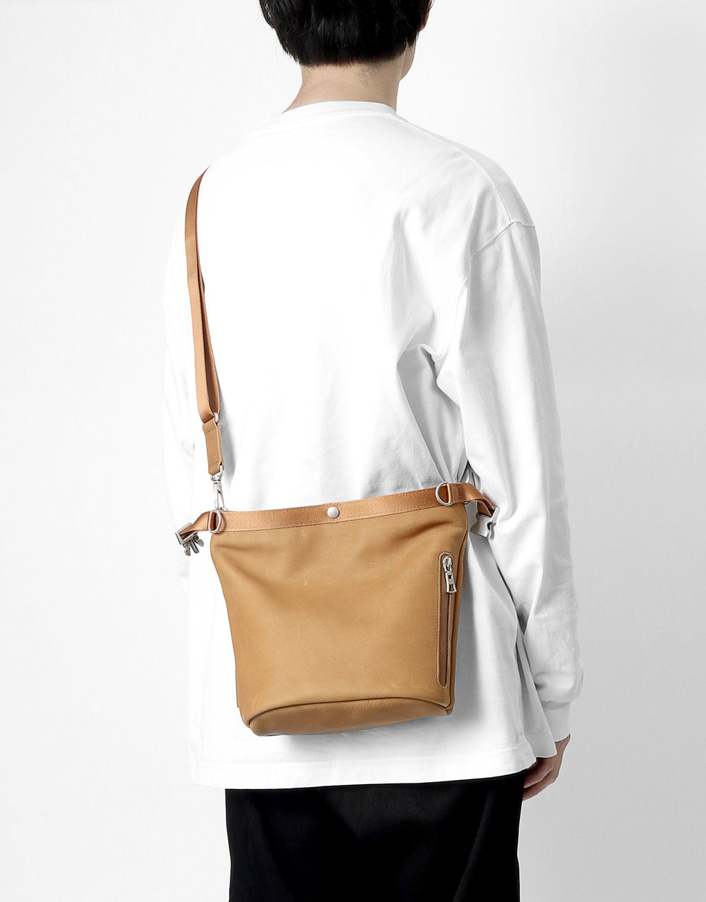 本体素材はレザー本来の質感を活かすため染料のみで仕上げを行っておりますので、若干の色ブレがございます。また素上げの特性上、変退色は避けることができませんのでご了承ください。