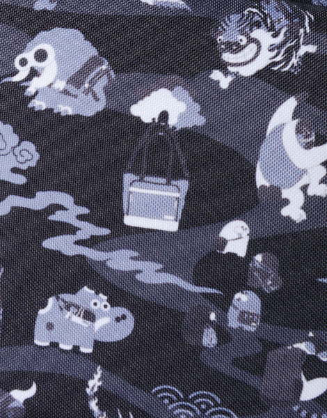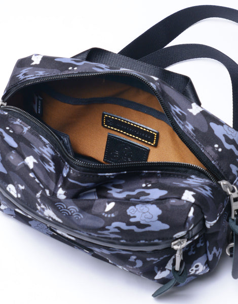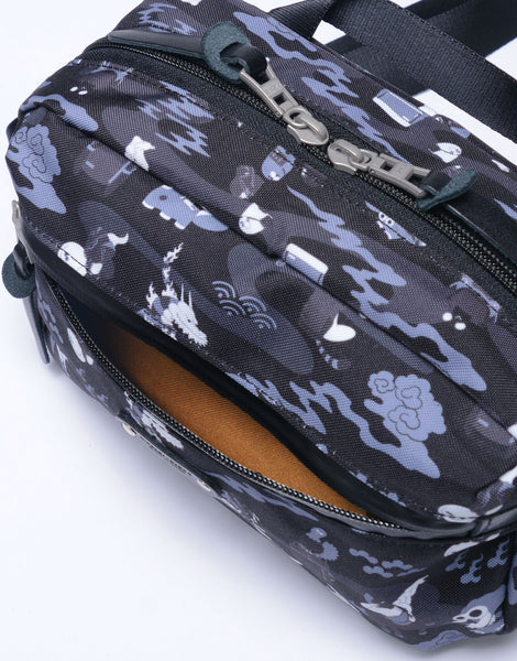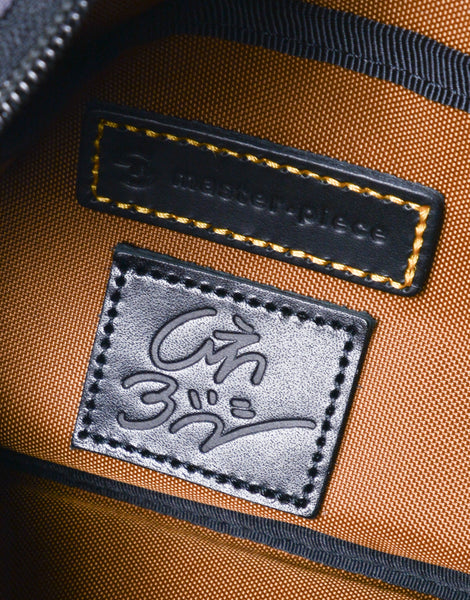 master-piece のRoot シリーズと Freak シリーズよりセレクトした型をベースにして、本体素材はタテ糸、ヨコ糸ともに600d のポリエステル糸をオックス織りした生地に、 オリジナル・グラフィックをインクジェット昇華転写プリントし、さらに生地の表面に撥水コート加工を施し耐水性にも考慮した生地を使用しています。