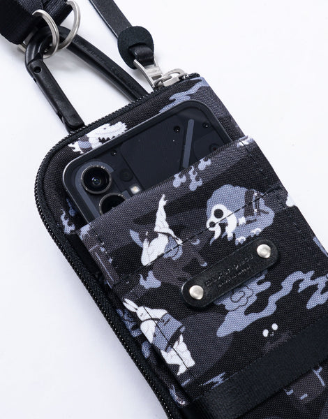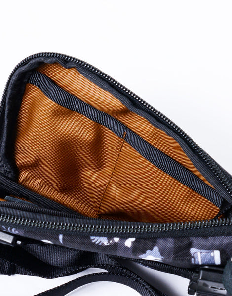 master-piece のRoot シリーズと Freak シリーズよりセレクトした型をベースにして、本体素材はタテ糸、ヨコ糸ともに600d のポリエステル糸をオックス織りした生地に、 オリジナル・グラフィックをインクジェット昇華転写プリントし、さらに生地の表面に撥水コート加工を施し耐水性にも考慮した生地を使用しています。