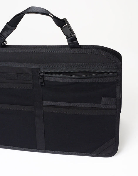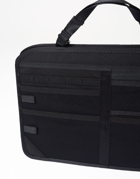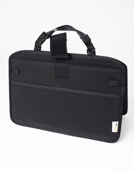 本体素材は工場から回収された製造廃棄物を再生することでエネルギー、原料の消費を抑え、廃棄物を減らし、焼却時の有害なガスを減少させる環境に優しい 420d のリサクルナイロン を高密度に織った CORDURA® ECO を使用しています。芯材と背面のスタンドで自立し、ラップトップやタブレットのほか、小物やケーブル類を収納することができます。 バッグインバッグとしてだけでなく、取り出して社内での移動や外部ワークスペース、自宅で使用するのに最適なワークパッドです。こんな商品がプラスαであればを形にしたシリーズで、 直営店、オフィシャルオンラインサイト限定商品です。Size | W350 H235mm |