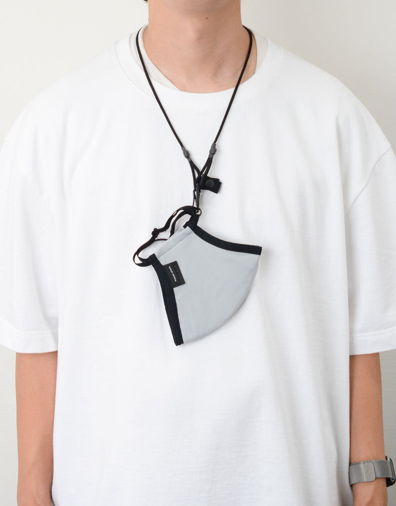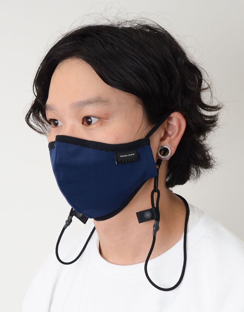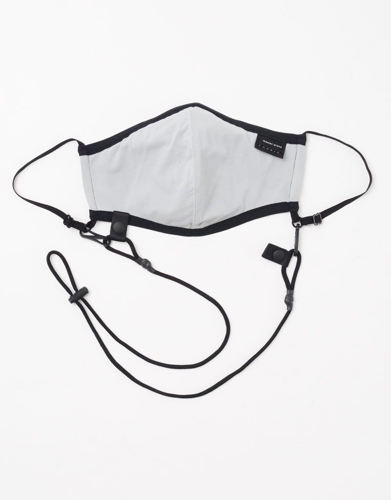 ネックストラップを装備した洗って繰り返し利用できるオールシーズン対応のマスクです。鼻部にはノーズワイヤーを入れ、 耳部はアジャスターでテープの長さを調節できるので、どの ような輪郭にもフィットしやすくなっています。またノーズパッドが付いており、立ち上げて着用することでフィット感が増し、メガネが曇りにくい設計になっています。 マスク本体に脱着や長さの調節ができるネックストラップが付いており、人が少ない場所や飲食時にマスクを外した際に置き場所に困ることがなく、必要な時にはマスクを素早く装着す ることができます。表地には、INVISTA 社の CORDURA® ベア天竺を使用しています。この生地は吸水速乾性に優れ、耐摩耗により耐久性を高め、接触冷感や UV カット、抗ピリング、 抗スナッグ性等を持った高機能素材です。裏地には抗ウイルス機能繊維加工技術 CLENSE® を施したコットン 100% のバーバリー生地を使用しています。CLENSE® は繊維上の特定のウ イルスの数を 99% 減少させ特定の細菌の増殖を抑制します。生乾き臭などの嫌な臭いにも効果を 発揮します。さらっとした肌ざわりで洗濯耐久性にも優れた素材です。本製品はオレフィ ン樹脂を使用した専用密閉式クリアケースに封入していますので、そのままマスクケースとしてもご利用いただけます。抗菌・抗ウイルス機能繊維加工技術「CLEANSE®/ クレンゼ ®」は、 固定化抗菌成分「Etak®( イータック )」を 繊維表面に強力に固定化する加工技術です。