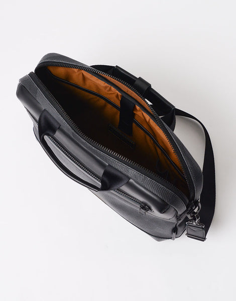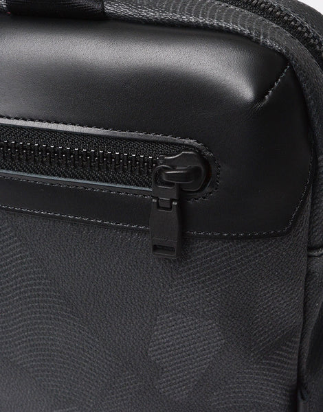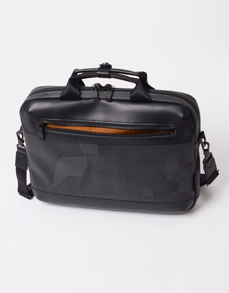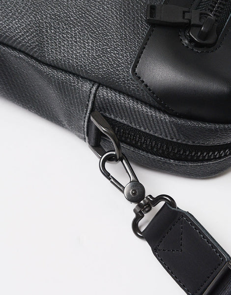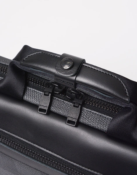 アートディレクター兼デザイナー足立豊樹氏によるヘリテイジ × モダンアートを取り入れたテキスタイルグラフィックブランド "nowartt" とのコラボレーションシリーズ。 今回は植物の葉にみられる網目状の構造である「葉脈」からインスピレーションを受けデザインされた nowartt オリジナル迷彩になります。 本体素材は 11 号キャンバスにオリジナル迷彩を汚水排水が少ない環境に配慮されたプリンターでインクジェットプリントし、表層に 0.3mm 厚 PVC をコーティングしています。 仕上に表面のマット樹脂処理を施しエンボス加工をする事で生地に奥行きを出し高級感を持たせた質感に仕上げています。 付属レザーは北米産の良質ステアレザーを使用し、鞣しの段階で「3M」社製の防水剤をドラムに入れレザーの芯まで浸透させ染色し、オイルを含ませて下地を作ります。 仕上げの段階にも同社製の防水剤をスプレーする事でより防水性を高め仕上げています。「SCOTCHGARD®」のモニタリング試験に合格した防水•防油•防汚の革です。 試験は表面を削っても行われるため、効果がうすれる事はないといわれています。 nowartt オリジナル迷彩柄に加工を重ね重厚感を出した生地とスムースな防水レザーを付属で合わせたスマートなシリーズになります。