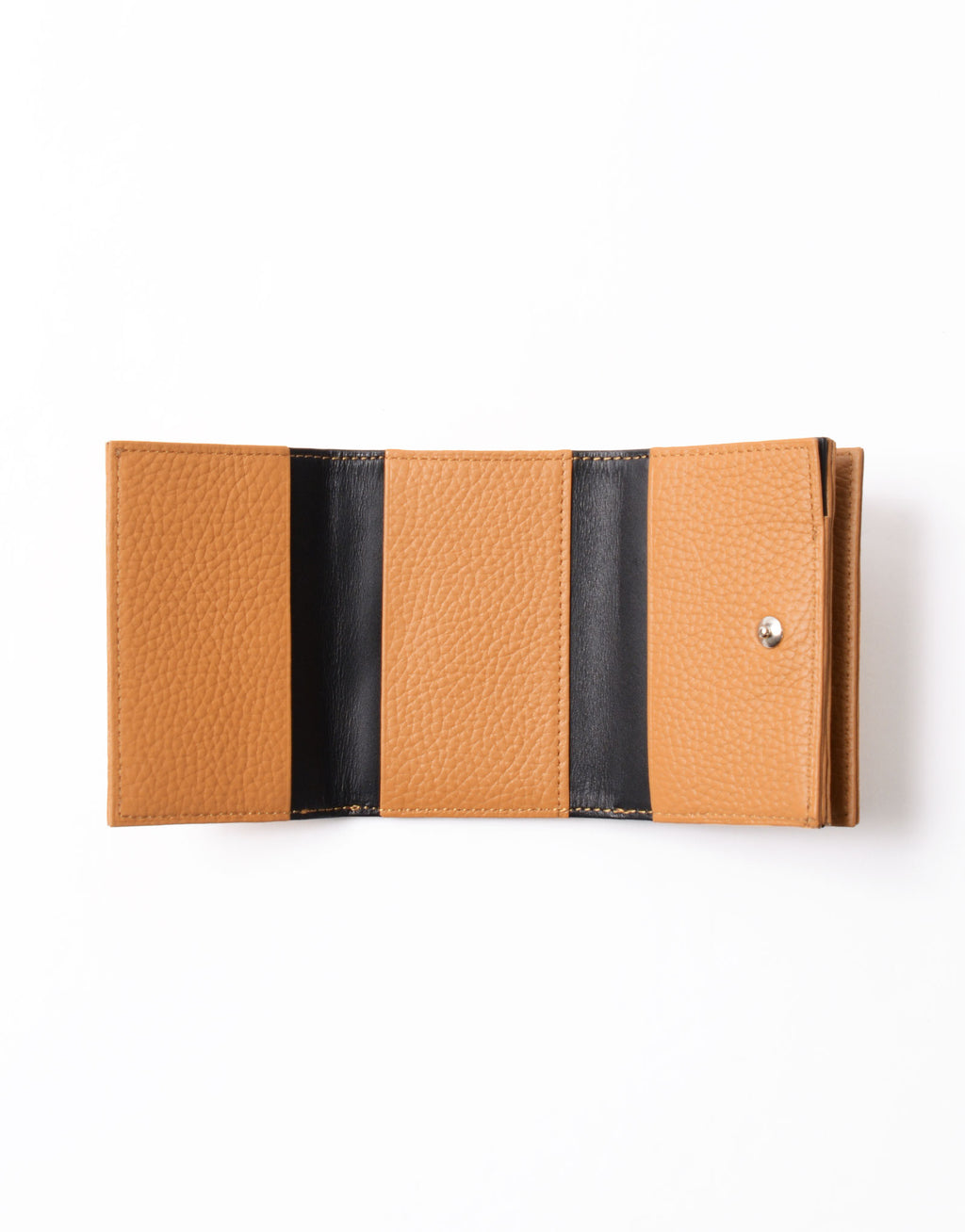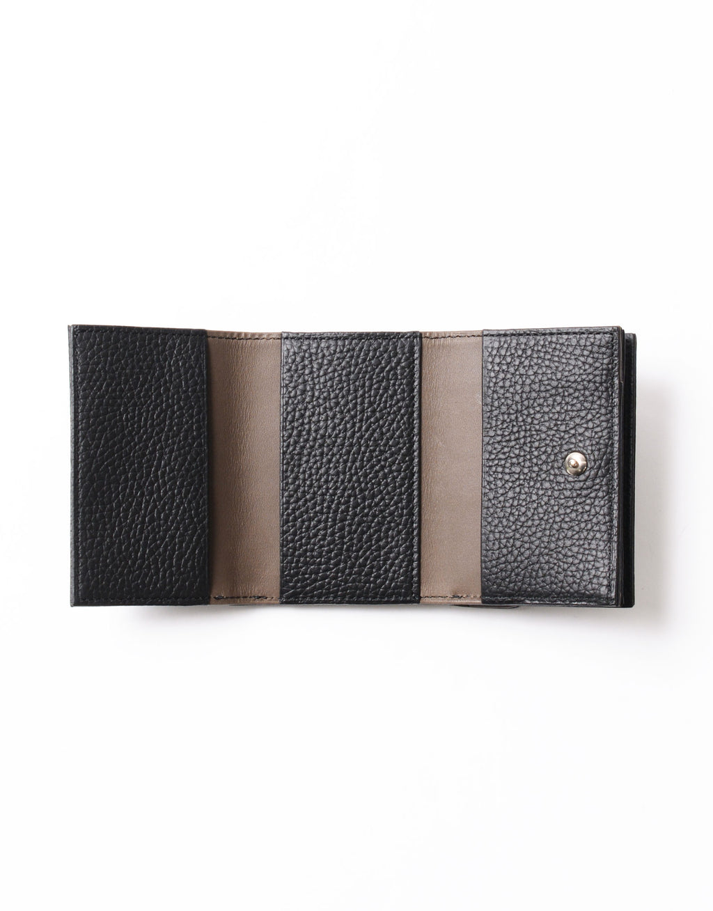 コンパクトながら充実の収納力を誇る三つ折りウォレット。