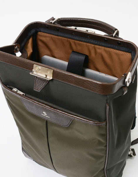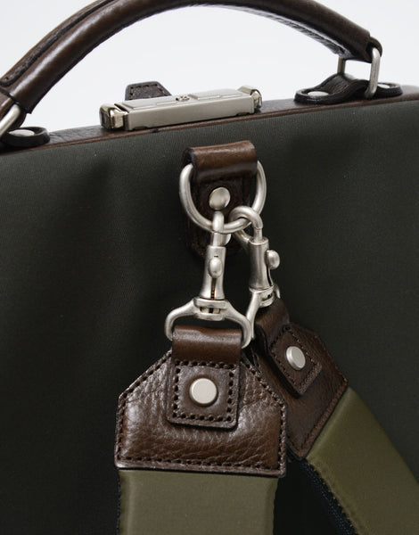 主体材料是一种优雅的斜纹,具有轻巧,高强度和抑制的光泽,水平的150D聚酯扭曲纱线和高密度。 将表面应用于Teflon™,以提供驱动性和防毒性。为了进一步提高防水性和强度,还将PVC处理应用于背部。 附着的织物是高密度的尼龙斜纹织式的,具有深色,它通过使用垂直纱线上的110D半纱和210D的亮线来提供两种类型的光泽。基于组合的奶牛皮革加油后,将其附着的皮革与染料一起涂抹,从而产生颜色的柔韧性和深度,然后铣削(摩擦皮革并散发谷物和光泽)通过涂抹使用皮革具有独特的质地。锁可以用附带的钥匙锁定。可以在On -Off和Unisex上使用的系列,具有经典的氛围,On -Off -Off和Munisex使用轻质合成材料,具有现代功能。在Ver.2中,肩带不仅可以连接到顶部手柄上,而且还可以连接到后身体上提供的D型,具体取决于体型。此外,通过将前袋更改为拉链规范,隐私和安全性得到了增强。