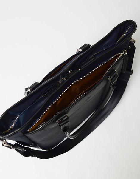 主体使用的皮革是来自北美的优质阉牛皮,染色时在泰科中添加了3M制造的防水剂,深入渗透到皮革纤维中。它持续防止水和油从皮革的背面和侧面以及划痕区域渗透。这是通过3M“SCOTCHGARD®”监测测试的防水、防油、防污皮革。即使表面被刮擦也会进行测试,因此效果不会减弱。另外,加工有光面和压花两种,光面是半苯胺,但饰面利用了皮革的柔软性,压花看起来更精致优雅,而且比光面更不容易出现划痕。很难跟上。我们选择了油和单宁,使其尽可能轻盈。所附面料经纱采用100d CORDURA®半消光纱,纬纱采用420d CORDURA®有光纱,符合英威达CORDURA®品牌面料标准,采用高密编织优雅斜纹布整理,并涂有特殊透湿防水膜,MASTERTEX-06是L-vent®与经编尼龙层压而成的三层结构原创面料。该商务系列配备多种隔层以满足现代需求,追求功能性。| Size | W330 H320 D150mm |