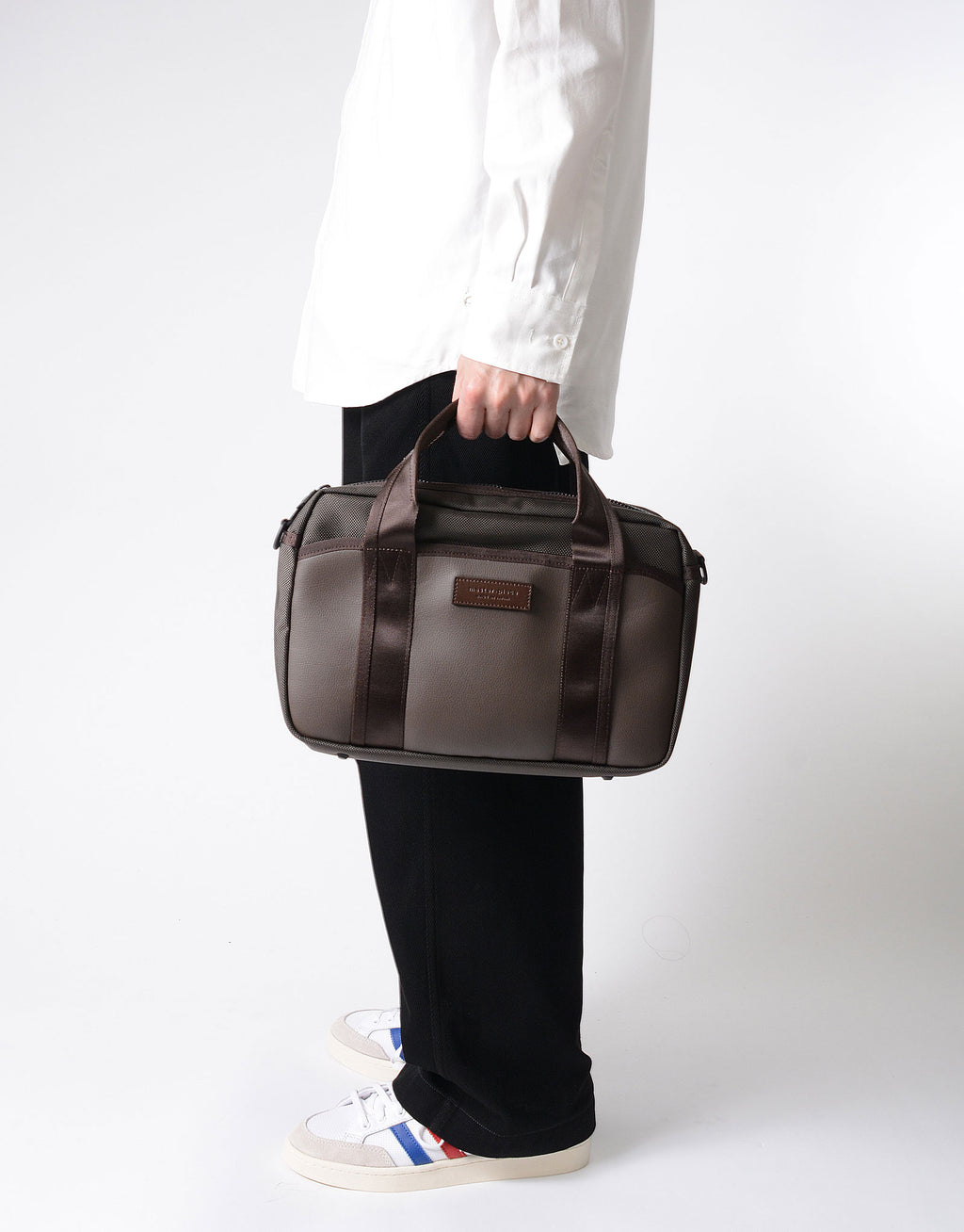 天然皮革のような質感を持ちながら、傷に強く防水防汚性に優れたコントラクトレザー(高耐久合成皮革)をメイン素材に採用。本革のような見た目と柔らかさを持ちながら軽量で、天候を気にせず使用できます。