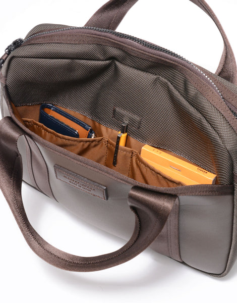メイン収納前面側には、小物を分けて収納できるファスナーポケットが備えられています。