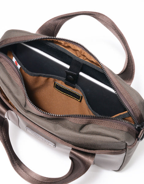 メイン収納背面側にはタブレットが収納できるスリーブを備えています。ハンモックのような少し浮いている構造になっており、床に置いた時に衝撃が加わりにくくなっています。