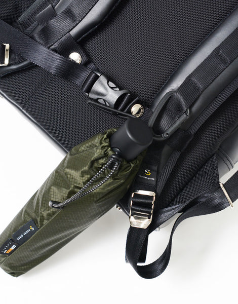 伞包本身有一个宽阔的开口,可以轻松放入雨伞,您也可以使用附带的登山扣将其固定在包上。
